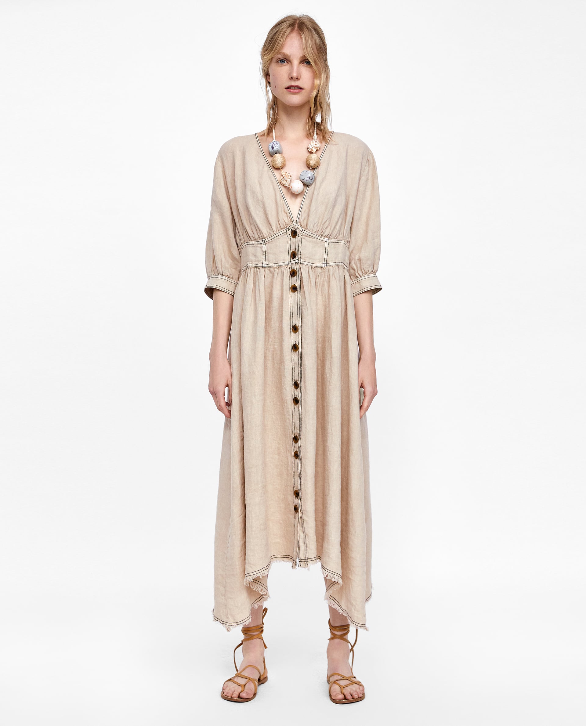 Topstitched Linen Dress